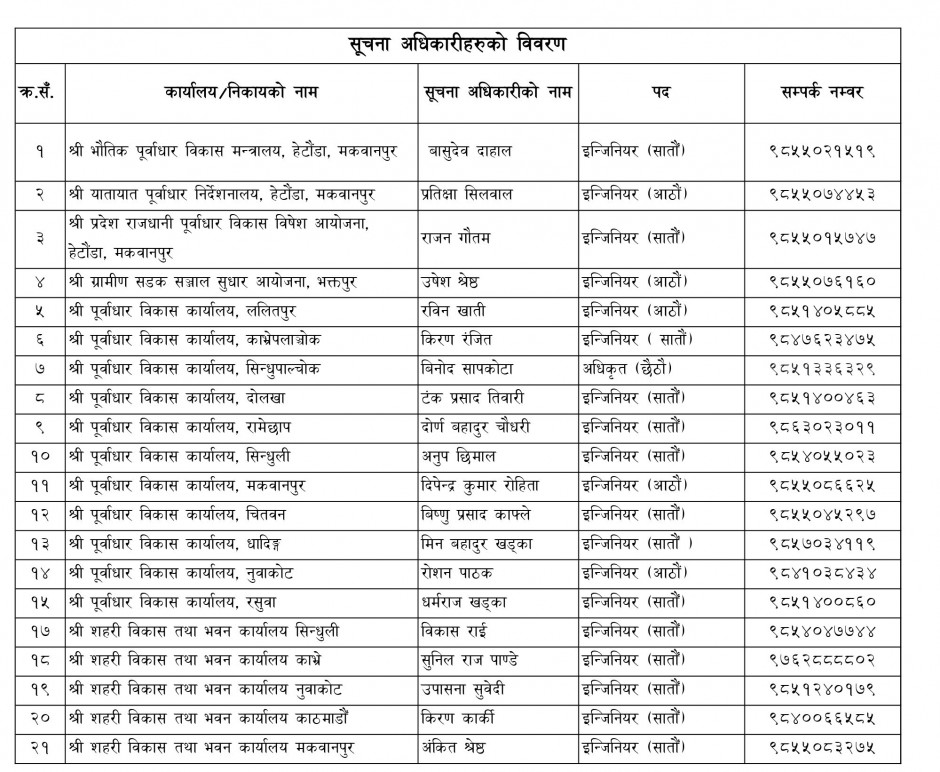 भौतक पूर्वाधार विकास मन्त्रालयको मिति २०७८/१०/२७ को प्रदेश सचिवस्तरीय निर्णयानुसार सरुवा तथा पदस्थापना भएका कर्मचारीहरुको पत्रहरु